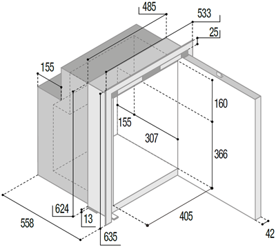 | Einbaurahmen: | serienmäßig, für Einbau in Position DOOR INSIDE oder DOOR OUTSIDE |