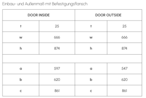 | Einbaurahmen: | serienmäßig, für Einbau in Position DOOR INSIDE oder DOOR OUTSIDE |