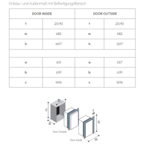Ein Einbaurahmen der wahlweise den Einbau des Gerätes in Positionen DOOR INSIDE oder DOOR OUTSIDE ermöglicht, gehört zum Lieferumfang.