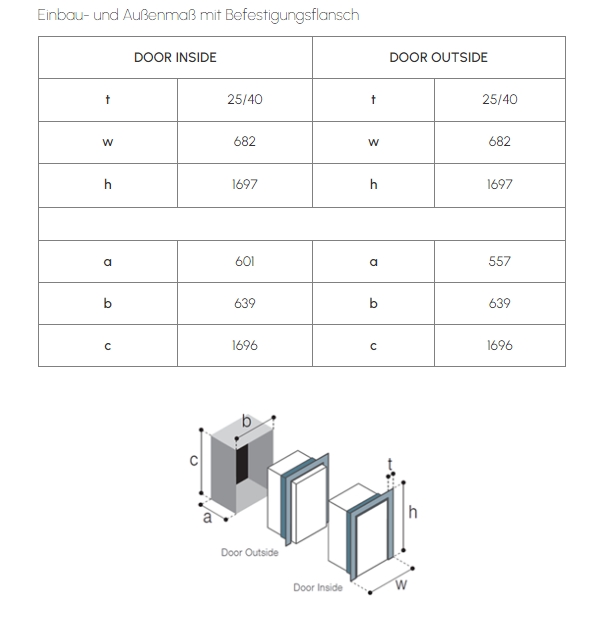 | Einbaurahmen: | serienmäßig, für Einbau in Position DOOR INSIDE oder DOOR OUTSIDE |