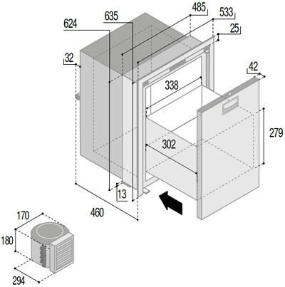 | Bauart: | Einbaugerät, Auszugskühler |