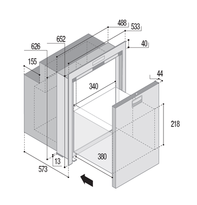 • Serienmäßig mit Einbaurahmen für den Möbeleinbau in den Positionen DOOR INSIDE oder DOOR OUTSIDE