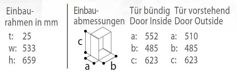 Einbaurahmen für die verschiedenen Einbau-Möglichkeiten